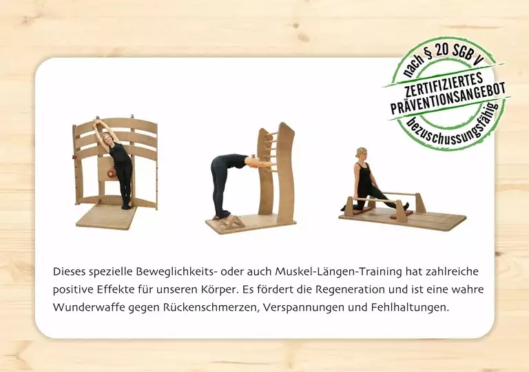 Steigern Sie Ihre Kraft, Ihre Ausdauer und Ihre Beweglichkeit. Sie werden staunen, wie effektiv dieses Training gegen Rückenschmerzen, Verspannungen und Fehlhaltungen wirkt.